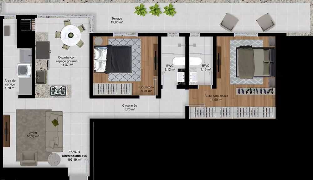 Área Privativa103m²