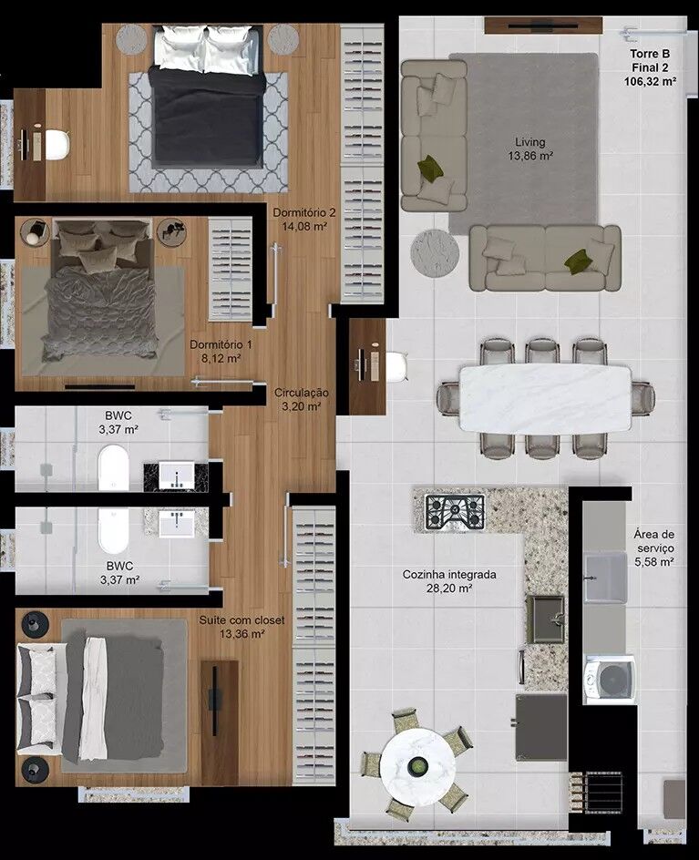 Área Privativa106m²